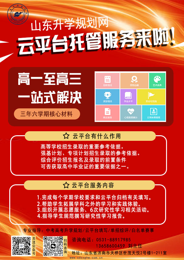 对于高中学生而言,云平台就是学生的档案,它记录着学生高中三年以来的所有的奖惩、任职、成绩、社会实践等,是学生综合实力的展现。云平台的综合素质档案,在未来的高考升学中会起到重要作用,尤其是综合评价招生、强基计划招生。