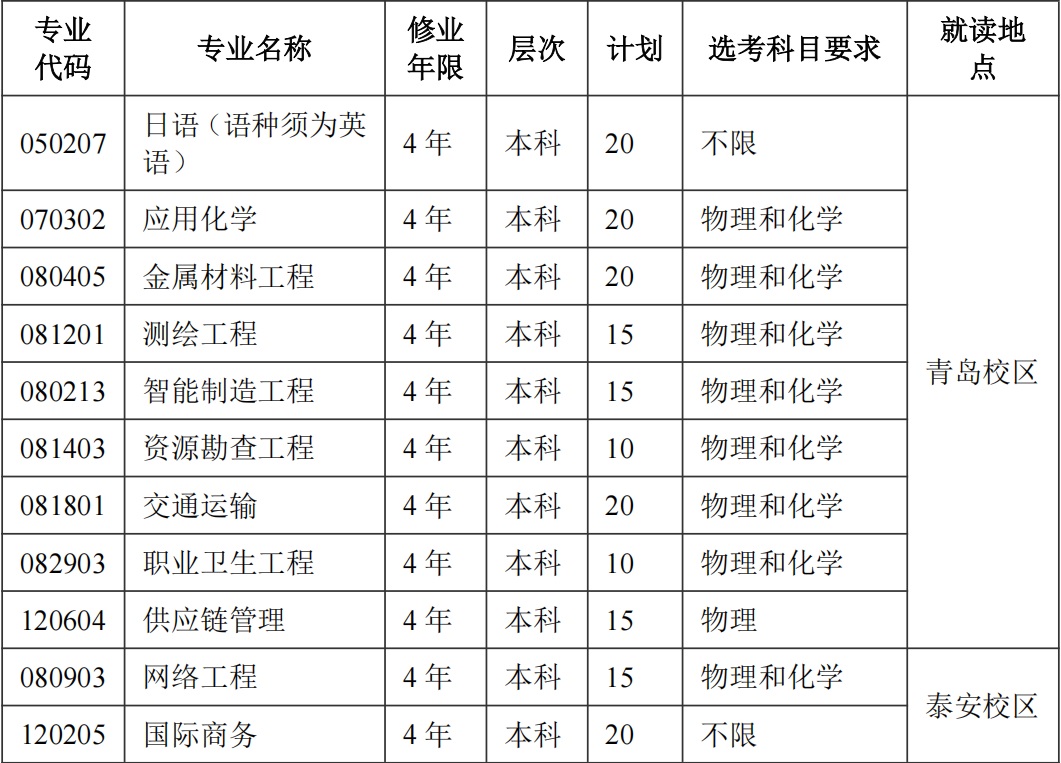 学校综合评价招生面向山东省内夏季高考生源,总计划数为180人,招生计划如下表: